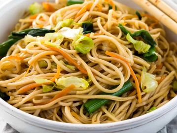 A classic Chinese-inspired dish of stir-fried egg noodles, mixed with savory vegetables and your choice of protein, all tossed together in a savory sauce.