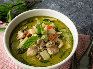 A spicy and creamy green curry made with coconut milk, green curry paste, mixed vegetables and your choice of protein.